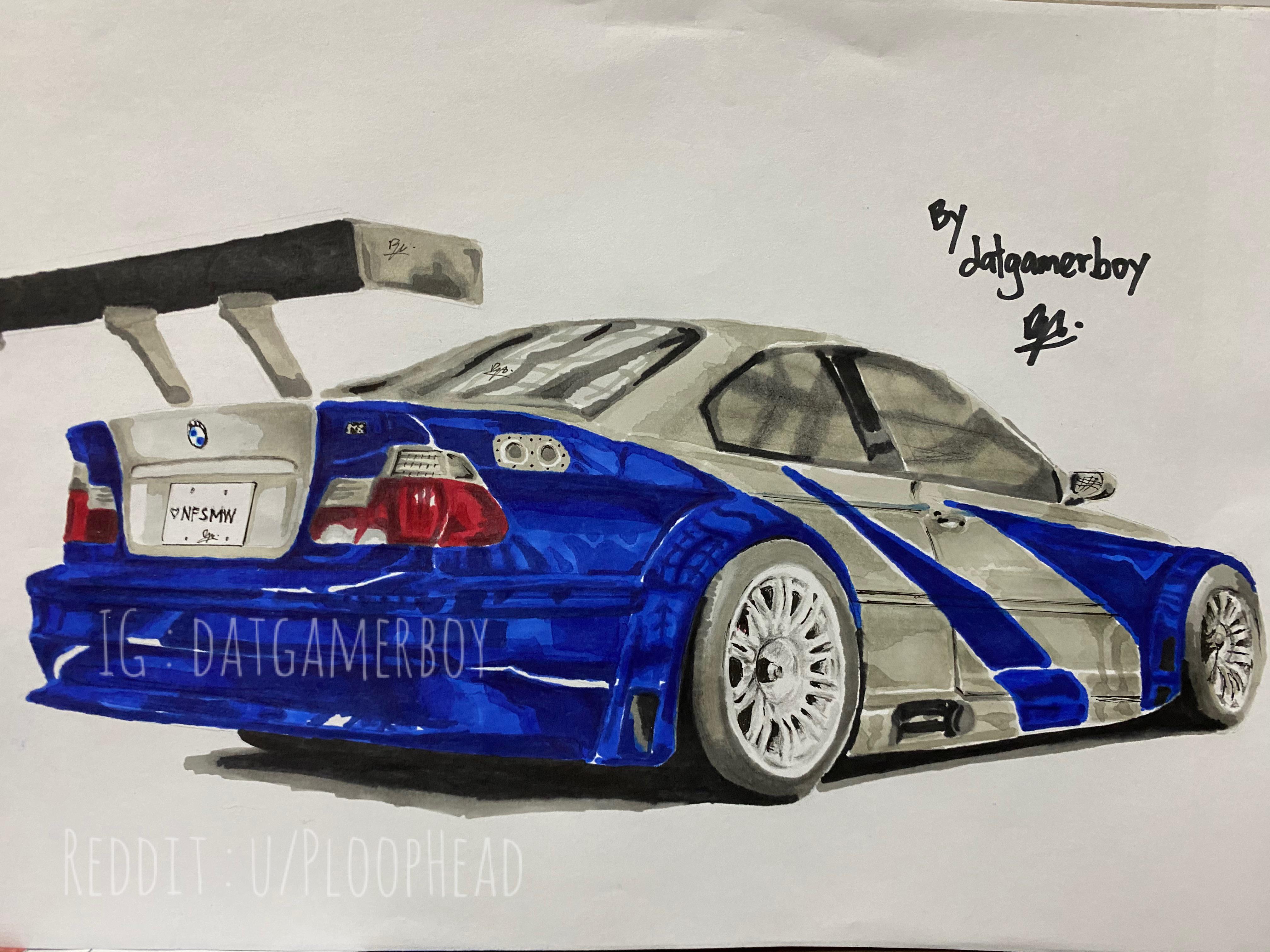 How to draw a BMW M3 E46 GTR 2005 from Need for Speed Most Wanted.